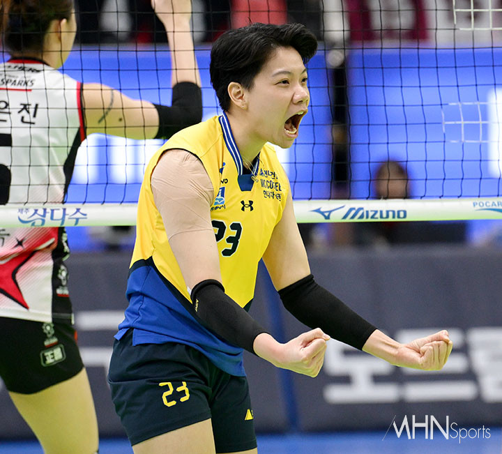 (MHN스포츠 수원, 이지숙 기자) 22일 수원 실내체육관에서 도드람 2024~2025 V-리그 여자부 현대건설과 정관장의 경기가 열렸다.