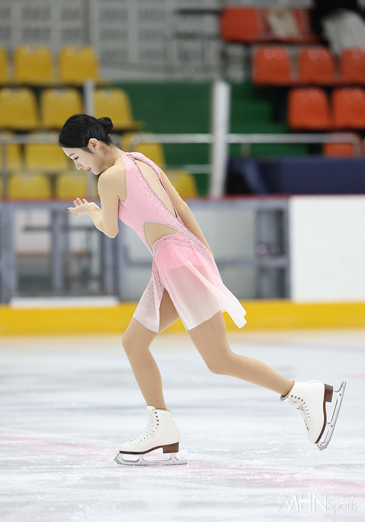 (MHN스포츠 춘천, 성대우 기자) 23일 강원도 춘천시 춘천의암빙상장에서 제106회 전국동계체육대회 피겨스케이팅 4일 차 경기가 사전경기로 진행됐다.