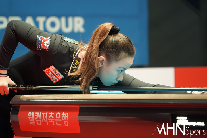 PPQ 48경기 1테이블에서 펼쳐진 베트남 응우옌호앙엔니 vs 정보윤1 경기 중 응우옌호앙엔니가 경기를 펼치고 있다.