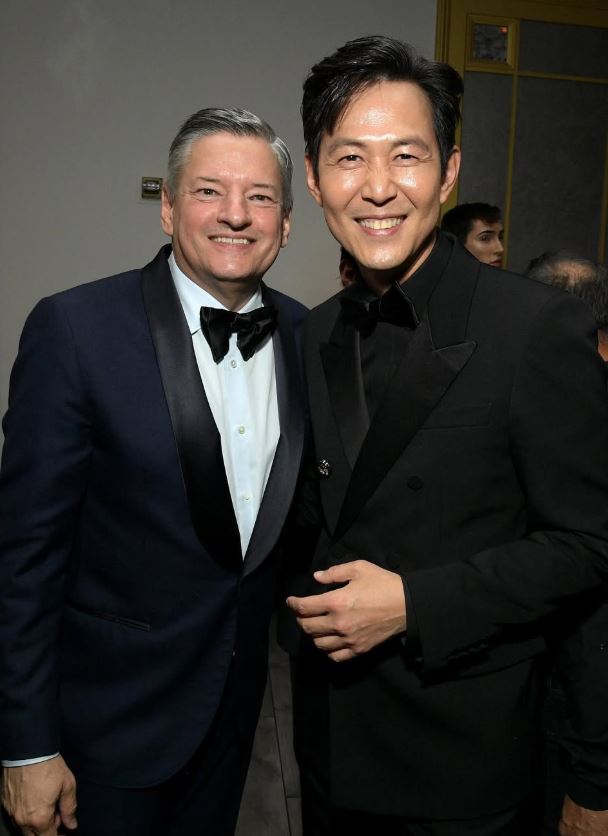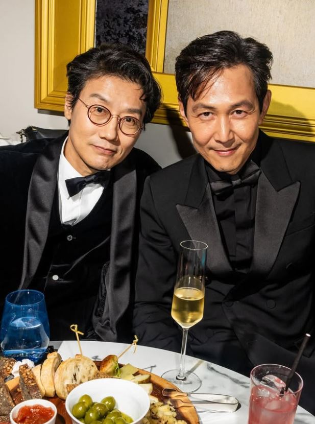 시상식 이후 파티에 참석한 이정재는 '오징어 게임' 황동혁 감독을 비롯해 테드 서랜도스 넷플릭스 공동 경영자(CEO), 제작사 퍼스트맨 스튜디오 김지연 대표 등과 함께 파티를 즐겼다.