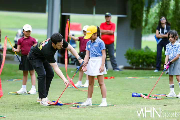 경기에 앞서 푸트리 아이샤 아마니가 스내그 골프 파3 경기를 펼치고 있다.