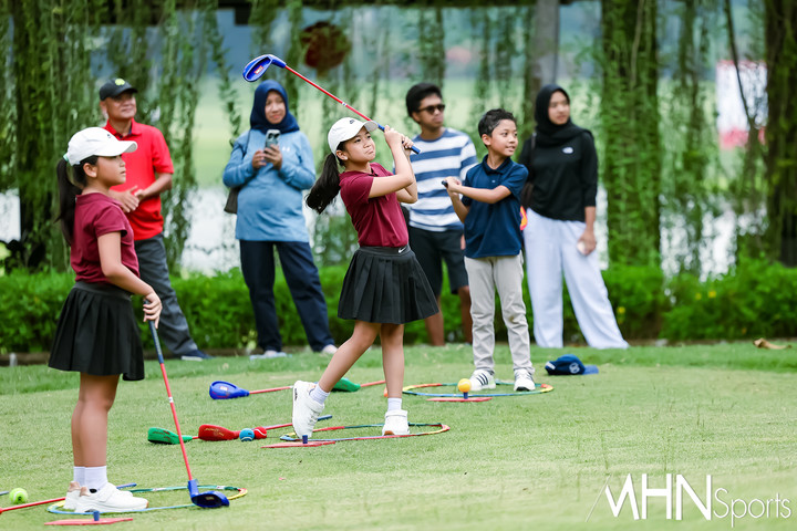 경기에 앞서 푸트리 아이샤 아마니가 스내그 골프 파3 경기를 펼치고 있다.