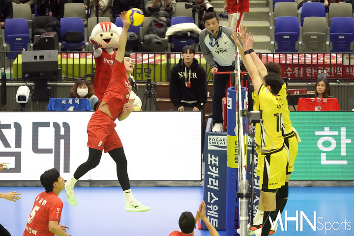 (MHN스포츠 수원, 박태성 기자) 9일 오후 수원체육관에서 '도드람 2024-2025 프로배구’ 남자부 한국전력 빅스톰과 KB손해보험 스타즈 경기가 열렸다.