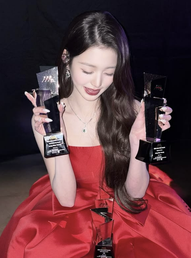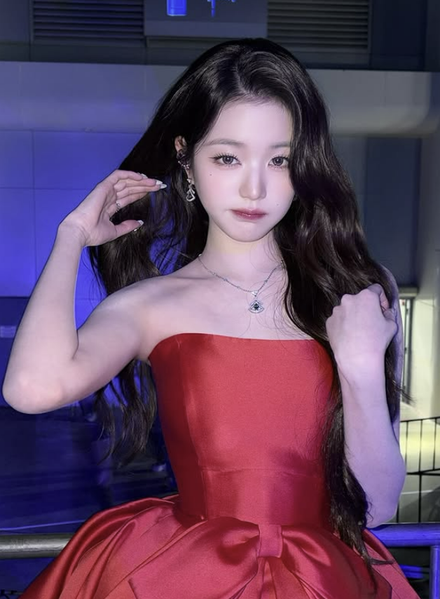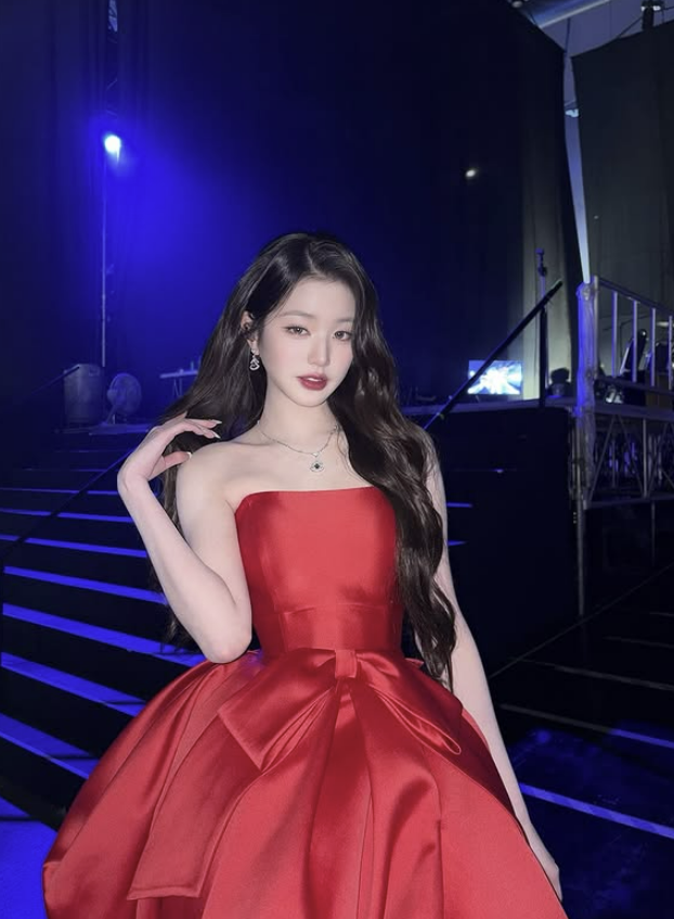 (MHN스포츠 안수현 인턴 기자) 그룹 아이브의 장원영이 마치 선물 상자 리본같은 풍성한 레드 드레스를 착용한 사진을 공개해 화제다.