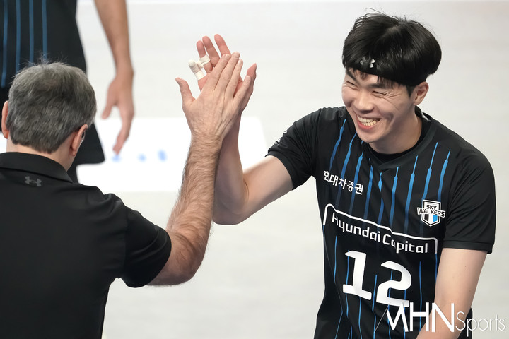 (MHN스포츠 천안, 박태성 기자) 7일 오후 충남 천안에 위치한 유관순체육관에서 '도드람 2024-2025 프로배구’ 남자부 현대캐피탈 스카이워커스와 OK저축은행 읏맨 경기가 열렸다.