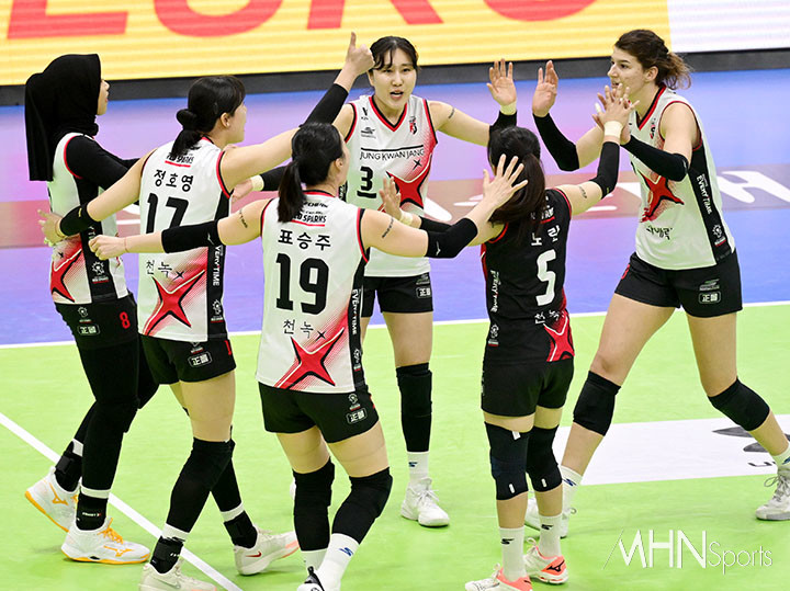 (MHN스포츠 수원, 이지숙 기자) 22일 수원 실내체육관에서 도드람 2024~2025 V-리그 여자부 현대건설과 정관장의 경기가 열렸다.