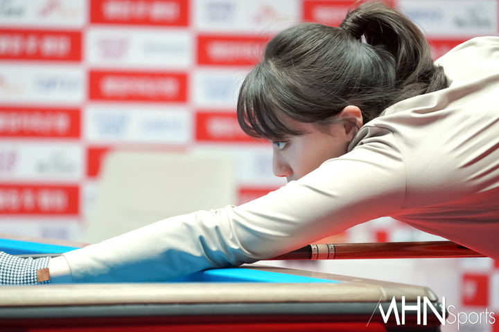 PPQ 48경기 1테이블에서 펼쳐진 베트남 응우옌호앙엔니 vs 정보윤1 경기 중 정보윤이 경기를 펼치고 있다.