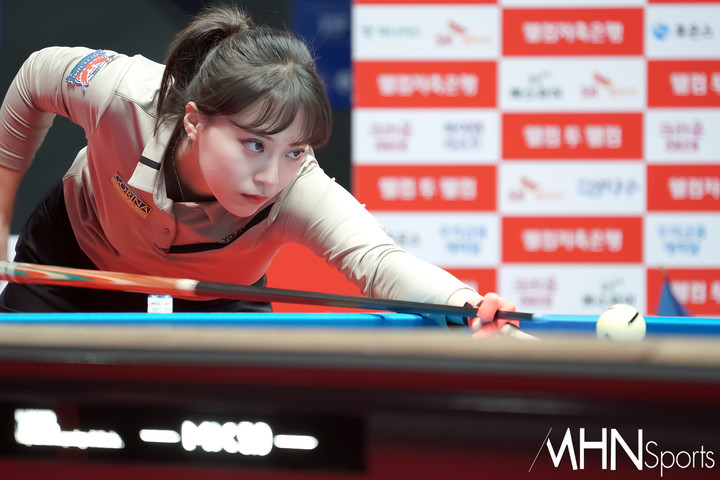 PPQ 48경기 1테이블에서 펼쳐진 베트남 응우옌호앙엔니 vs 정보윤1 경기 중 정보윤이 경기를 펼치고 있다.