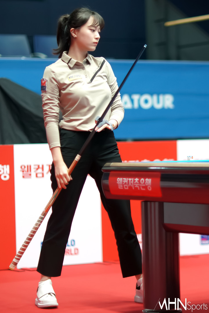 PPQ 48경기 1테이블에서 펼쳐진 베트남 응우옌호앙엔니 vs 정보윤1 경기 중 정보윤이 경기를 펼치고 있다.