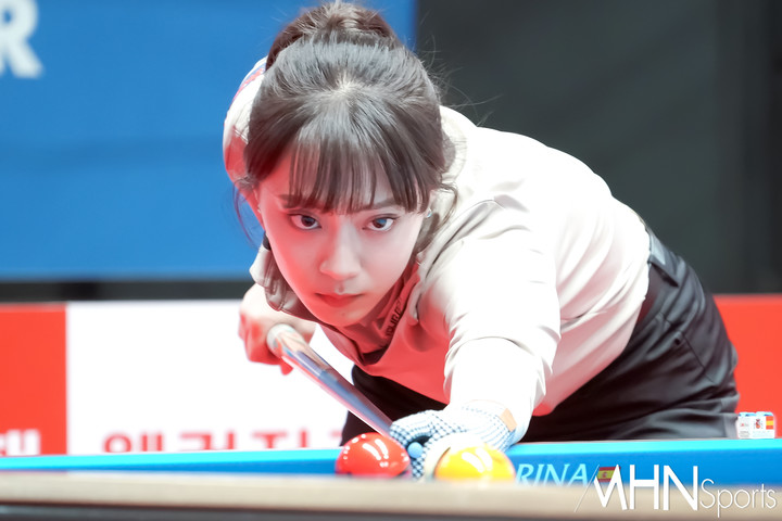 PPQ 48경기 1테이블에서 펼쳐진 베트남 응우옌호앙엔니 vs 정보윤1 경기 중 정보윤이 경기를 펼치고 있다.