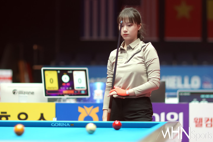 PPQ 48경기 1테이블에서 펼쳐진 베트남 응우옌호앙엔니 vs 정보윤1 경기 중 정보윤이 경기를 펼치고 있다.