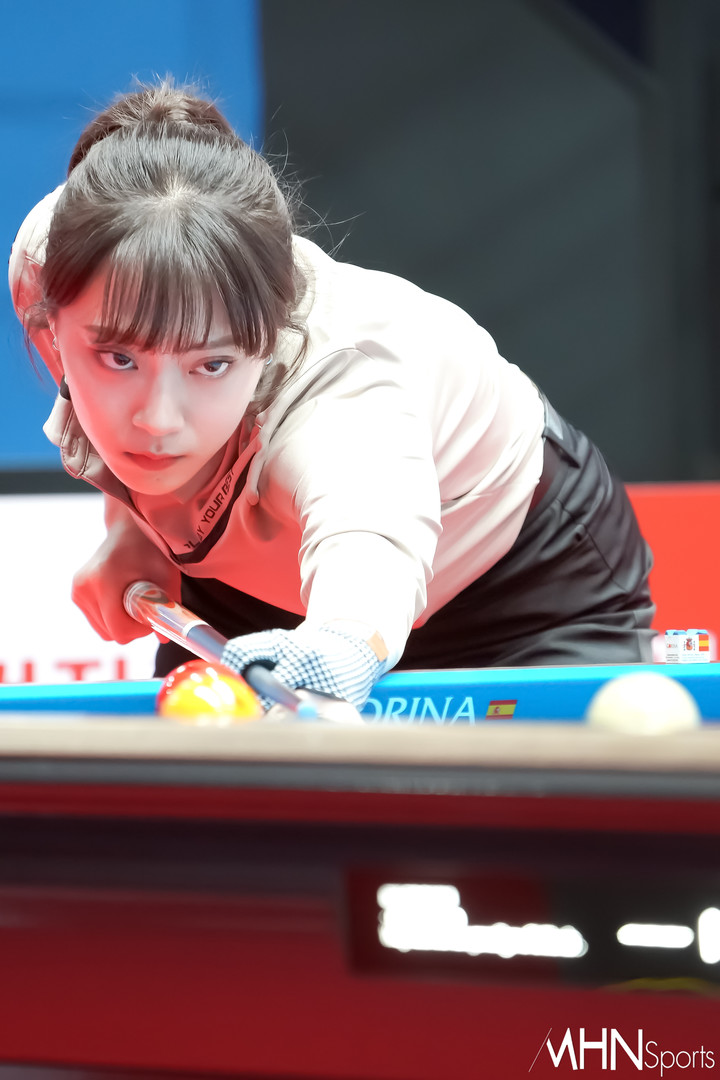 PPQ 48경기 1테이블에서 펼쳐진 베트남 응우옌호앙엔니 vs 정보윤1 경기 중 정보윤이 경기를 펼치고 있다.