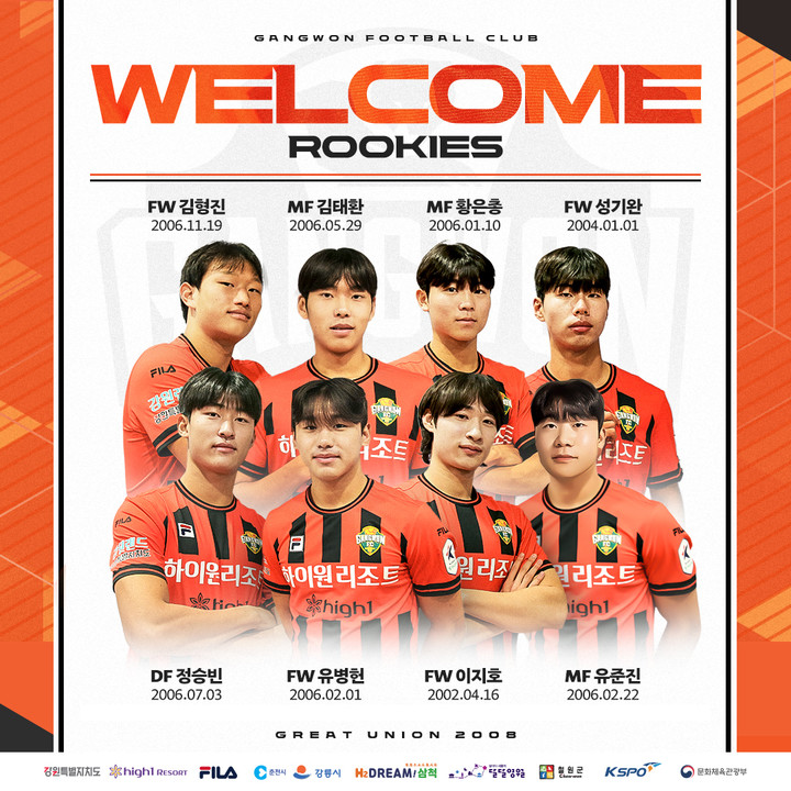 강원은 '2025시즌 신인 선수 8명을 영입했다"고 19일 공식 발표했다.