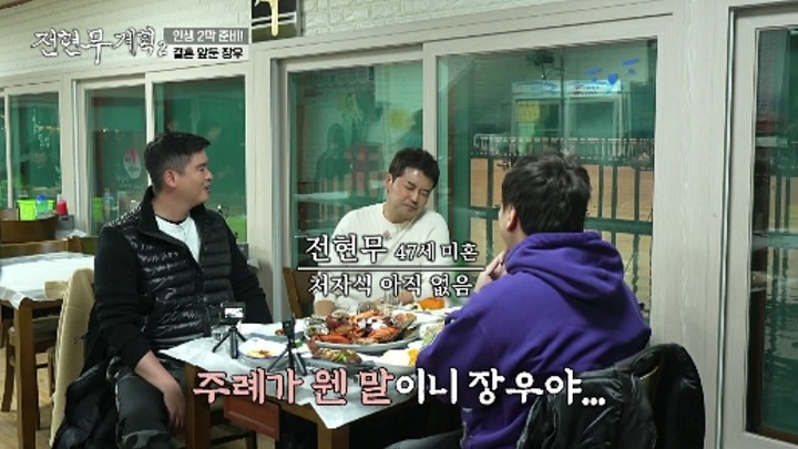 이후 꼬끼리 조개집에서 마주한 세 사람은 '토크'도 잊은 채 벵에돔 조림에 빠져들었다. 이때 전현무는 "어제 얘기하다 말았잖아"라며 토크를 전환한다.