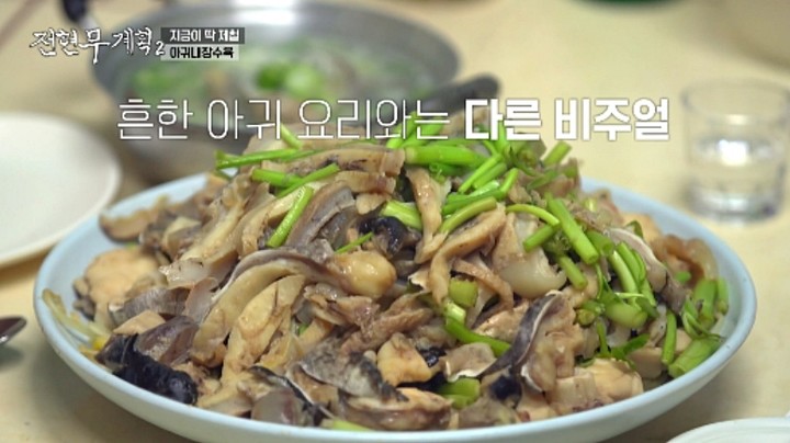 기이한 장소에 위치한 식당을 본 전현무는 "전현무계획 사상 가장 충격적인 비주얼이다"라며 입을 다물지 못했다. 그러나 이 곳에서 '아귀내장 수육'을 맛보고는 격찬했다.