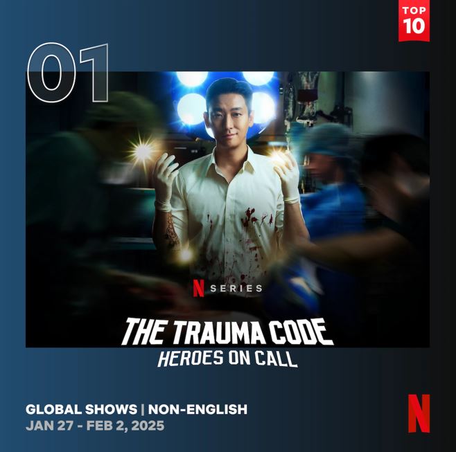5일 넷플릭스 글로벌 순위 집계 사이트 넷플릭스 TOP 10 투둠에 따르면 '중증외상센터'는 지난달 27일부터 이달 2일까지 8,270만 시간, 1,190만 시청 수(시청 시간을 작품의 총 러닝 타임으로 나눈 값)를 기록하며 TV쇼 (비영어) 부문 1위에 올랐다.