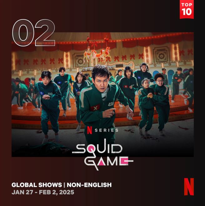 넷플릭스 시리즈 '오징어 게임' 시즌2도 여전히 인기다. 같은 기간 3,740만 시간, 520만 시청 수를 기록하며 2위를 기록했다. '오징어 게임' 시즌1 역시 5위에 랭크됐다.