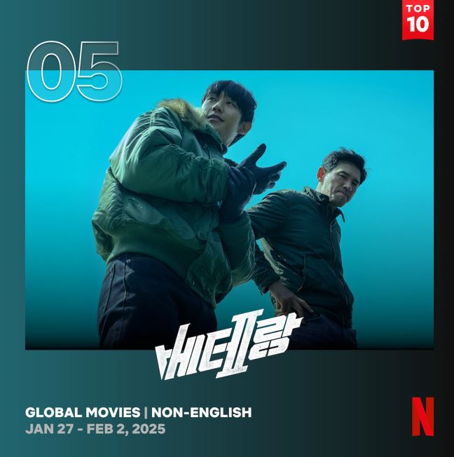 한편 영화(비영어) 부문에서는 '베테랑2'가 5위로 한국 작품 중 가장 높은 순위를 기록했다.  510만 시간, 260만 시청수를 기록했다.