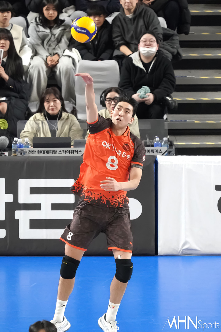 (MHN스포츠 천안, 박태성 기자) 7일 오후 충남 천안에 위치한 유관순체육관에서 '도드람 2024-2025 프로배구’ 남자부 현대캐피탈 스카이워커스와 OK저축은행 읏맨 경기가 열렸다.