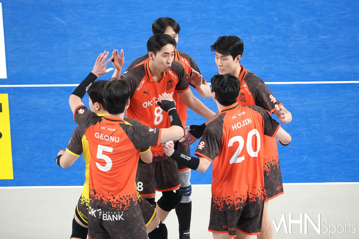 (MHN스포츠 천안, 박태성 기자) 7일 오후 충남 천안에 위치한 유관순체육관에서 '도드람 2024-2025 프로배구’ 남자부 현대캐피탈 스카이워커스와 OK저축은행 읏맨 경기가 열렸다.