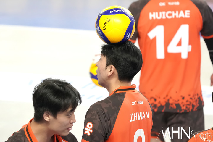 (MHN스포츠 천안, 박태성 기자) 7일 오후 충남 천안에 위치한 유관순체육관에서 '도드람 2024-2025 프로배구’ 남자부 현대캐피탈 스카이워커스와 OK저축은행 읏맨 경기가 열렸다.