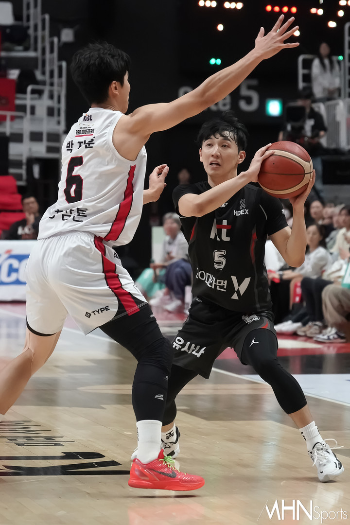 (MHN스포츠 수원, 박태성 기자) 3일 수원 권선구에 위치한 KT소닉붐아레나(서수원 칠보체육관)에서 '2024-2025시즌 KCC KBL 프로농구’ 수원 KT 소닉붐과 안양 정관장 레드부스터스 경기가 열렸다.