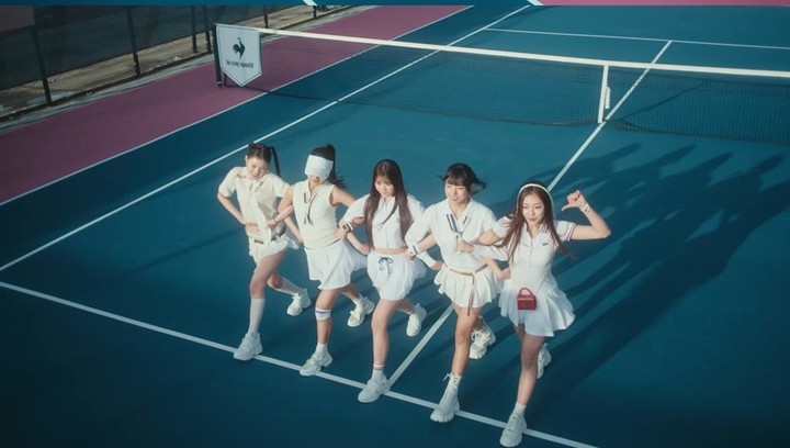 영상 속 멤버들은 화이트와 네이비 컬러의 테니스 의상을 완벽하게 소화하며 키치하면서도 세련된 매력을 발산했다. 멤버들의 풋풋하고 발랄한 이미지는 클래식한 테니스 룩과 조화를 이루며 시선을 단숨에 사로잡았다.