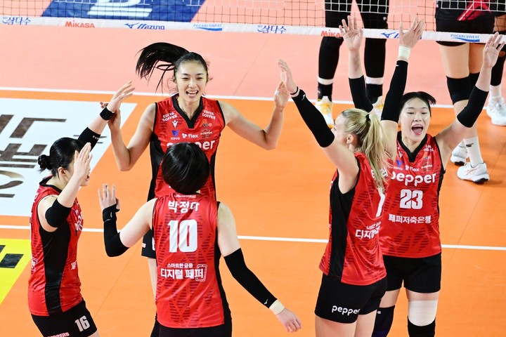 이날 페퍼저축은행은 박정아가 27득점을 기록하면서 팀 승리를 이끌었고, 이한비(20점)와 테일러(12점)도 힘을 보탰다. 현대건설은 모마가 양 팀 최다인 29득점을 올렸지만 공격 성공률이 33.33%에 그치면서 효율적인 모습을 보여주지는 못했다.