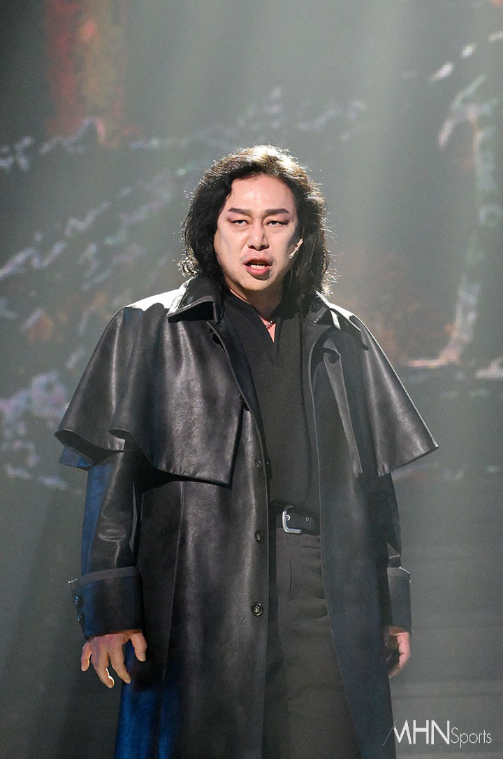 (MHN스포츠 이지숙 기자) 배우 김법래가 12일 오후 서울 서초구 한전아트센터에서 열린 뮤지컬 '블러디 러브' 프레스콜에서 시연을 선보이고 있다.