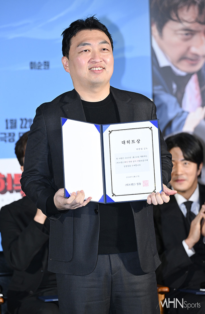 (MHN스포츠 이현지 기자) 최원섭 감독이 27일 오전 서울 용산구 CGV아이파크몰에서 진행된 영화 '히트맨2' 제작보고회에 참석하고 있다.