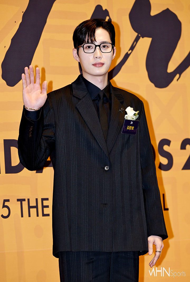 이날 시상식에 참석한 전 펜싱선수 김준호가 포즈를 취하고 있다.