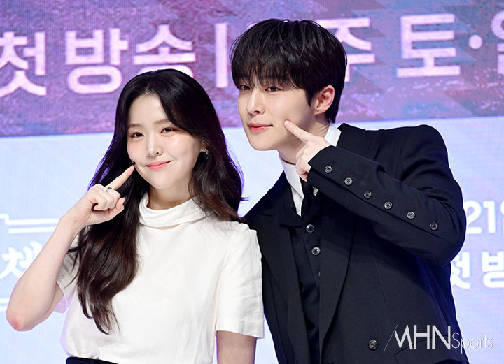 (MHN스포츠 이지숙 기자) 배우 김지은, 배인혁이 16일 오전 서울 강남구 논현동 엘리에나 호텔에서 열린 채널A '체크인 한양' 제작발표회에 참석해 포즈를 취하고 있다.