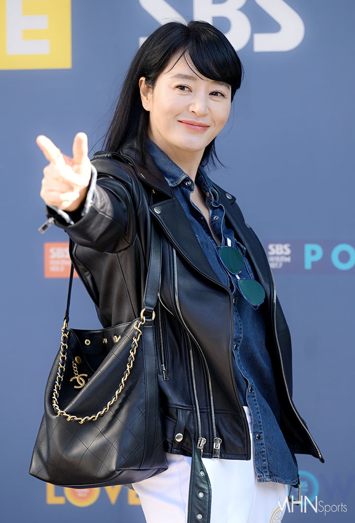 김혜수가 포즈를 취하고 있다.