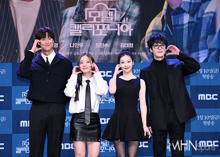 (MHN스포츠 이현지 기자) 배우 나인우, 이세영, 최희진, 김태형이 9일 오후 서울 마포구 상암 MBC 골든마우스홀에서 진행된 새 드라마 '모텔 캘리포니아' 제작발표회에 참석해 포토타임을 갖고 있다.