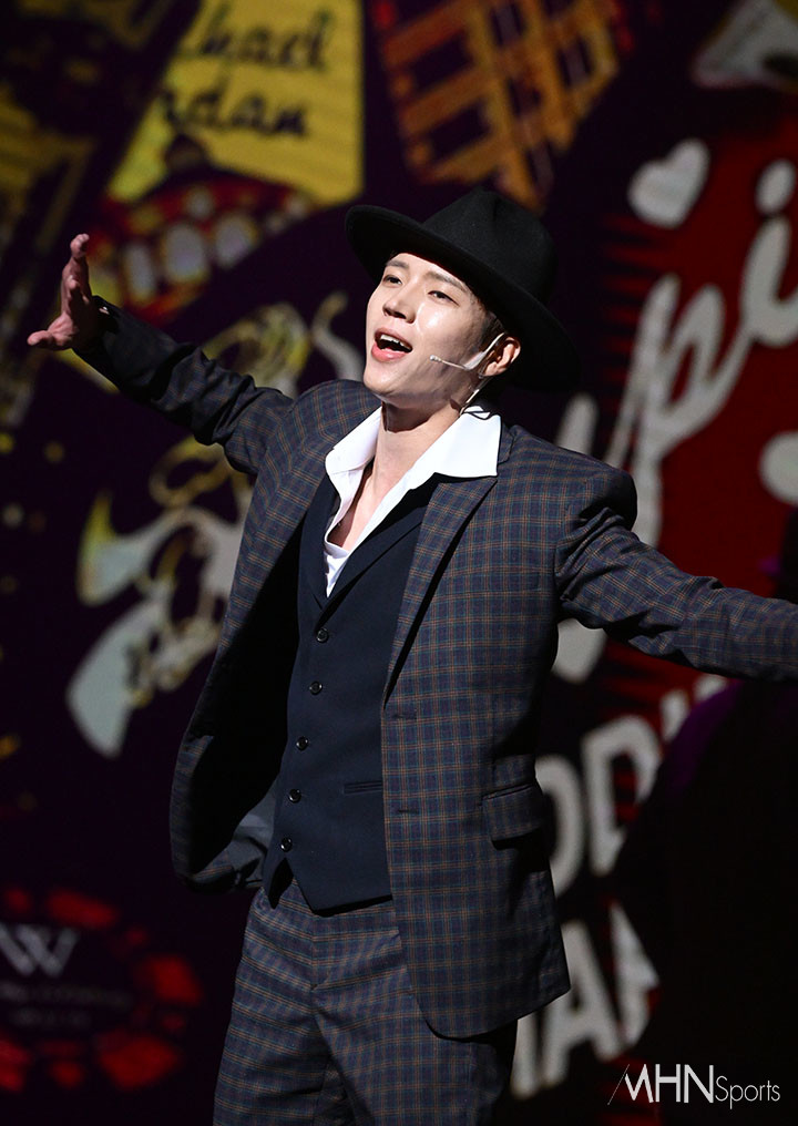 (MHN스포츠 이지숙 기자) 배우 남우현이 12일 오후 서울 서초구 한전아트센터에서 열린 뮤지컬 '블러디 러브' 프레스콜에서 시연을 선보이고 있다.