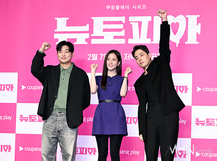 (MHN스포츠 이현지 기자) 윤성현 감독과 배우 박정민, 지수가 7일 오전 서울 영등포구 콘래드 서울 호텔에서 진행된 '뉴토피아' 제작발표회에 참석해 포토타임을 갖고 있다.
