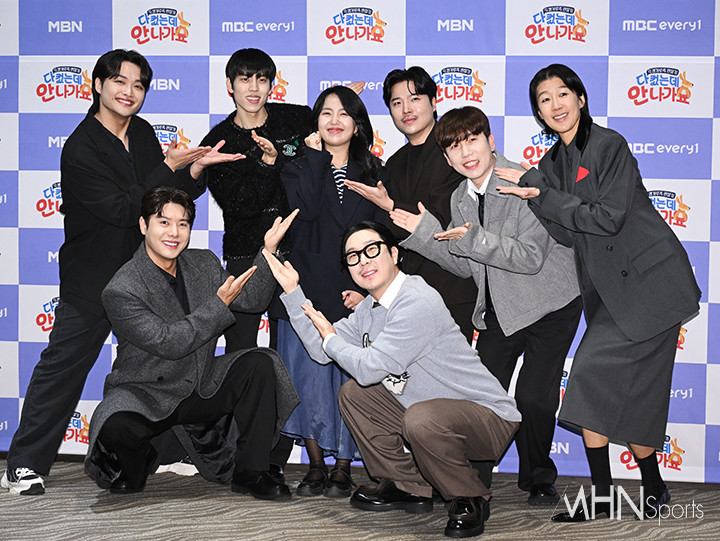 (MHN스포츠 이현지 기자) 전민경PD, 홍진경, 하하, 남창희, 신정윤, 지조, 동우, 황성재이 17일 오전 서울 마포구 스탠포드호텔에서 진행된 예능 '다 컸는데 안 나가요' 제작발표회에 참석해 포토타임을 갖고 있다.