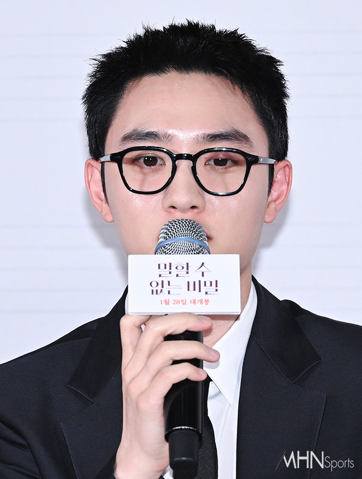 (MHN스포츠 이현지 기자) 배우 도경수가 14일 오후 서울 강남구 메가박스 코엑스점에서 진행된 영화 '말할 수 없는 비밀' 언론시사회 및 기자간담회에 참석해 질문에 답하고 있다.