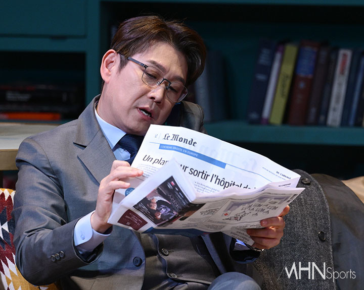 (MHN스포츠 이지숙 기자) 배우 민영기가 10일 오후 서울 서초구 예술의전당 자유소극장에서 진행된 연극 '대학살의 신' 프레스콜에서 시연을 선보이고 있다.