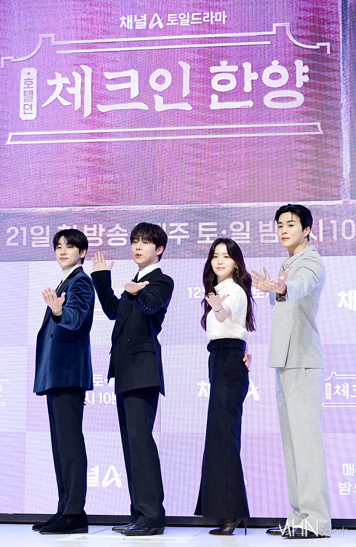 (MHN스포츠 이지숙 기자) 배우 박재찬, 배인혁, 김지은, 정건주가 16일 오전 서울 강남구 논현동 엘리에나 호텔에서 열린 채널A '체크인 한양' 제작발표회에 참석해 포즈를 취하고 있다.