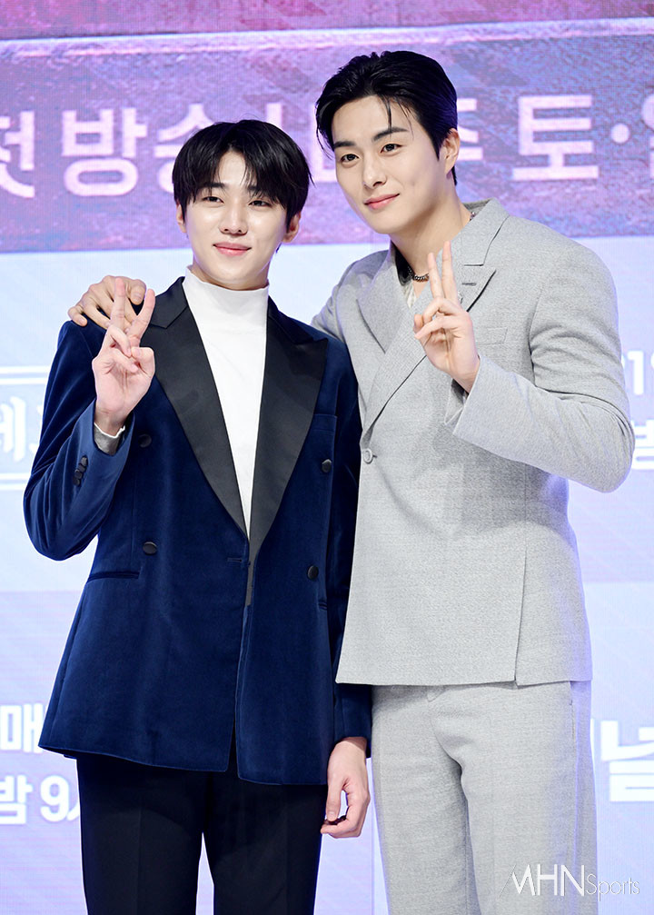 (MHN스포츠 이지숙 기자) 배우 박재찬, 정건주가 16일 오전 서울 강남구 논현동 엘리에나 호텔에서 열린 채널A '체크인 한양' 제작발표회에 참석해 포즈를 취하고 있다.