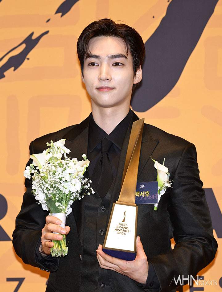 이날 시상식에 참석한 배우 백서후가 포토타임을 갖고 있다.