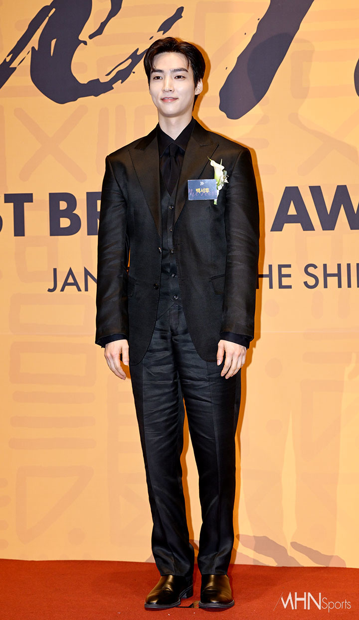 이날 시상식에 참석한 배우 백서후가 포토타임을 갖고 있다.