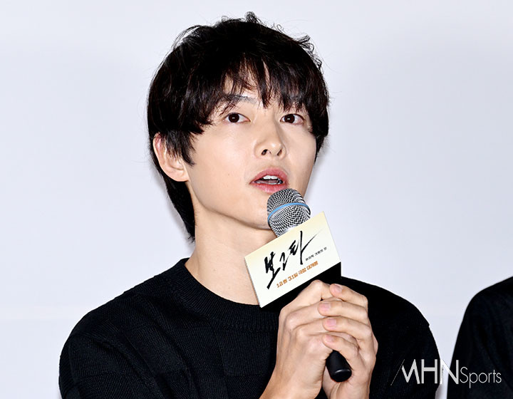 (MHN스포츠 이지숙 기자) 배우 송중기가 19일 오후 서울 강남구 메가박스 코엑스에서 진행된 영화 '보고타: 마지막 기회의 땅'(김성제 감독) 언론 시사회에 참석해 인사말을 하고. 있다.