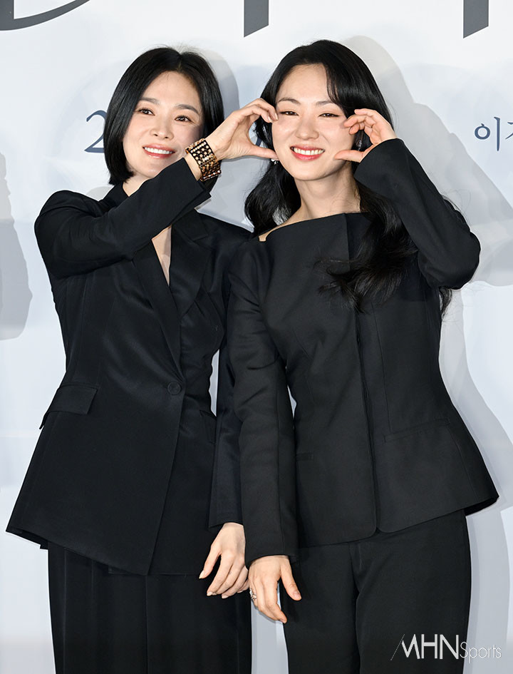 (MHN스포츠 이지숙 기자) 배우 송혜교, 전여빈이 16일 오전 서울 용산구 CGV용산아이파크몰에서 열린 영화 '검은 수녀들'(감독 권혁재) 제작보고회에 참석해 포즈를 취하고 있다.