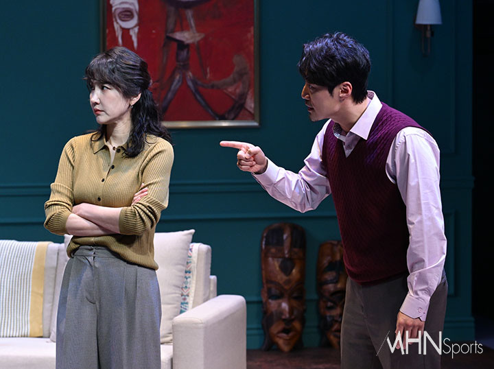 (MHN스포츠 이지숙 기자) 배우 신동미, 이희준이 10일 오후 서울 서초구 예술의전당 자유소극장에서 진행된 연극 '대학살의 신' 프레스콜에서 시연을 선보이고 있다.