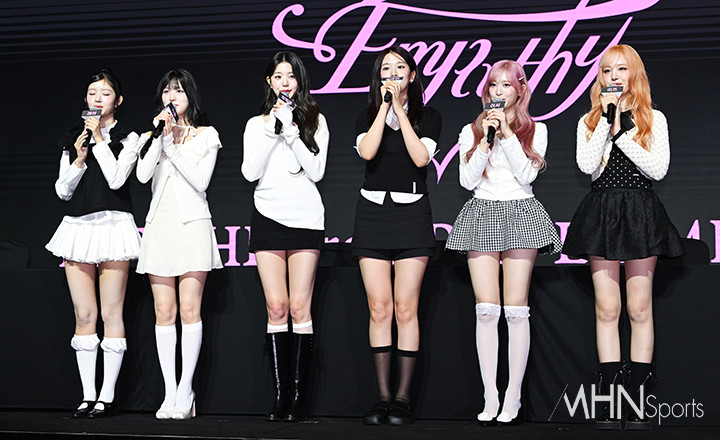 (MHN스포츠 이현지 기자) 그룹 아이브가 3일 오후 서울 영등포구 콘래드 서울 호텔에서 진행된 세 번째 미니 앨범 '아이브 엠파시(IVE EMPATHY)' 발매 기념 기자간담회에 참석하고 있다.