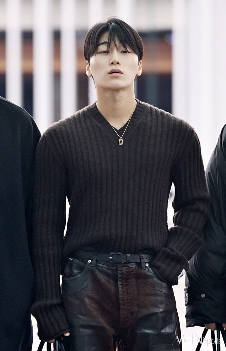 에이티즈 산이 출국하고 있다.
