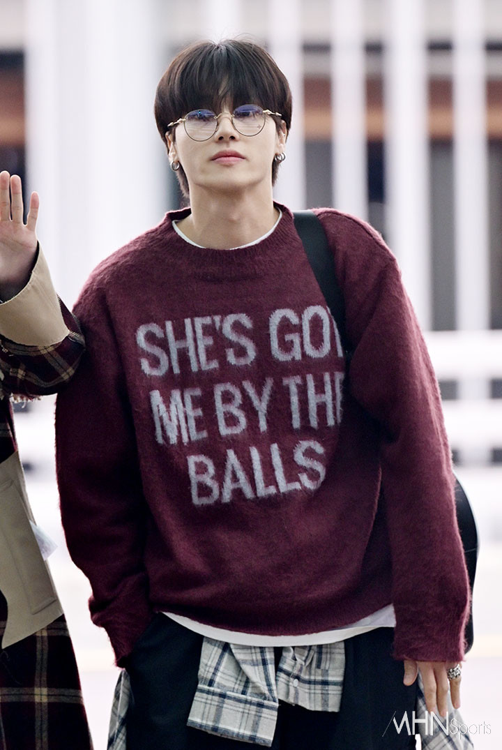 에이티즈 우영이 출국하고 있다.