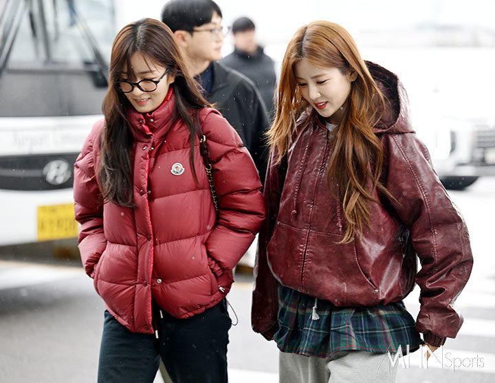 에이핑크 윤보미, 박초롱이 출국하고 있다.